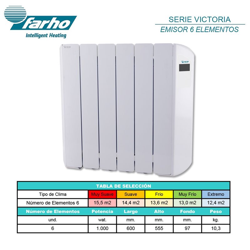Radiador eléctrico FARHO VICW06 serie VICTORIA WIFI blanco 6 modulos 1000W