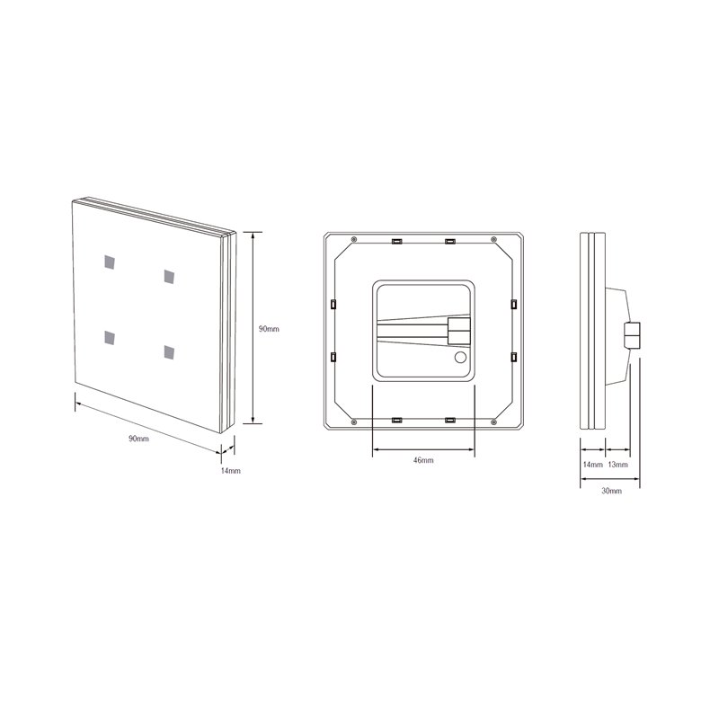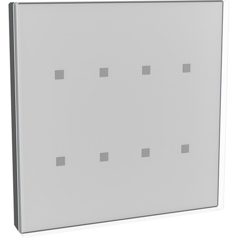 • Pulsador Capacitivo Multi-función LaükaDot, de 8 teclas, con cristal Blanco y marco en color Cromo.