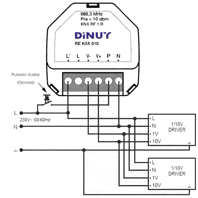 Actuador de regulacion 1-10V KNX-RF 1 canal DINUY PE K5X 010