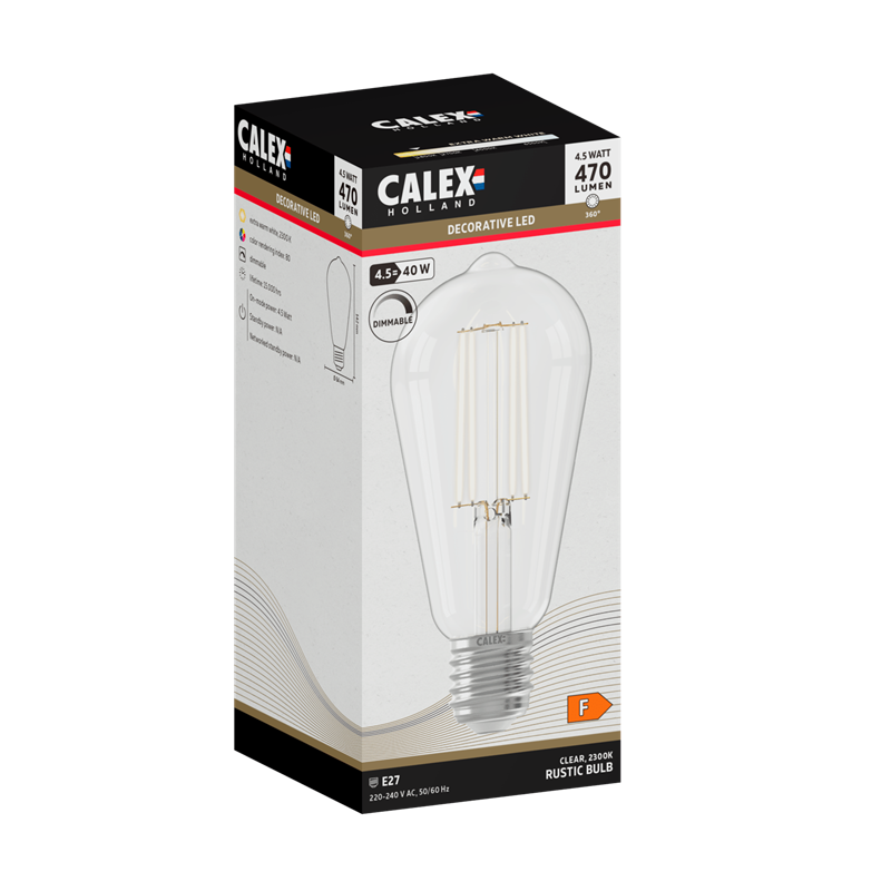 Bombilla Led regulable CALEX 1101002000 E27 Rustic ST64 4.5W 2300K Clear