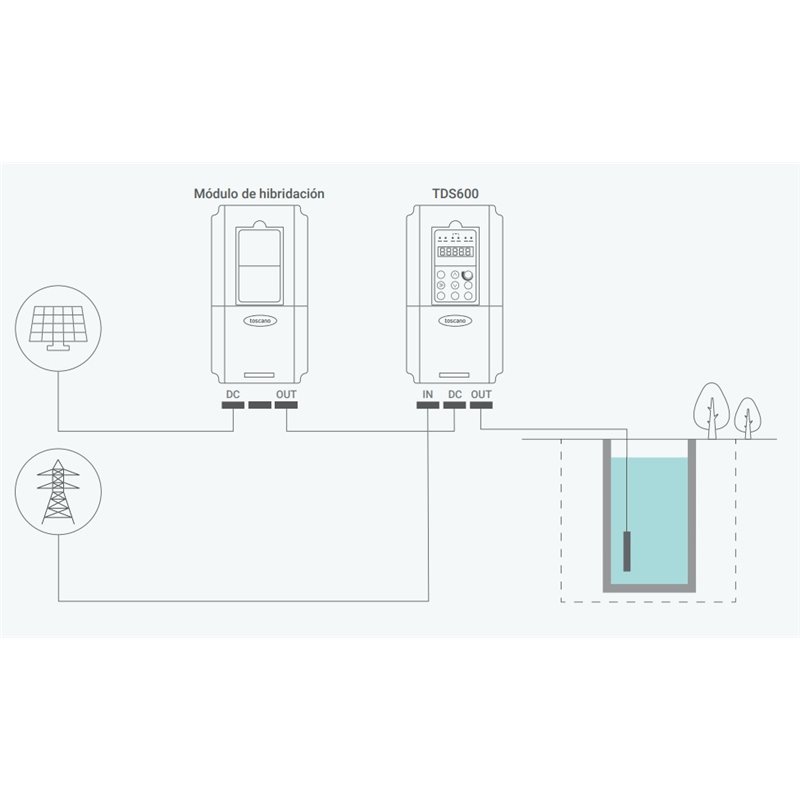 Los nuevos módulos de hibridación permiten alimentar simultaneamente los variadores TDS600 con energía tanto de la red eléctrica como de paneles fotovoltaicos.