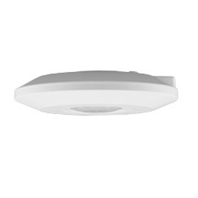 Detector de movimiento por tecnología PIR, destinado a montaje superficial en techo. Presenta un reducido espesor, lo cual lo hace pasar desapercibido una vez instalado.