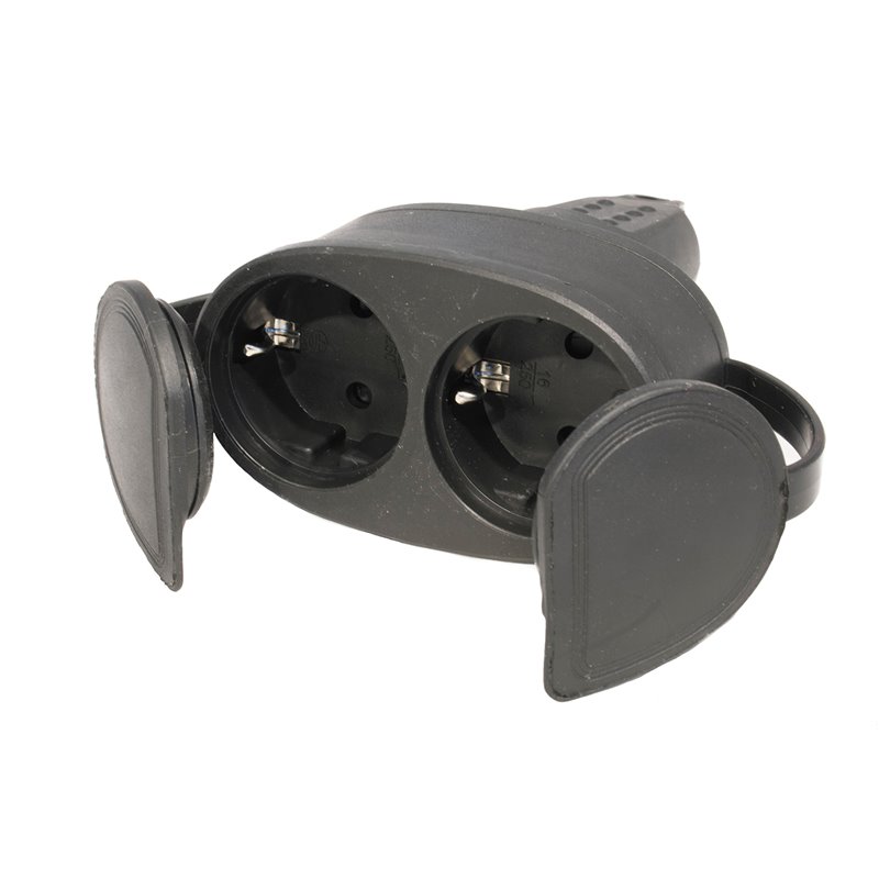Base aerea de 2 vias con tapas, 16A 250V, caucho negro IP44
