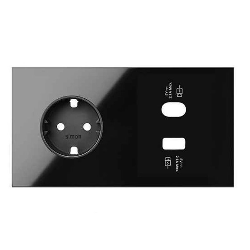 Kit frontal 2 elementos 1 base + USB C+A SIMON 10020238-138 Simon 100 Negro