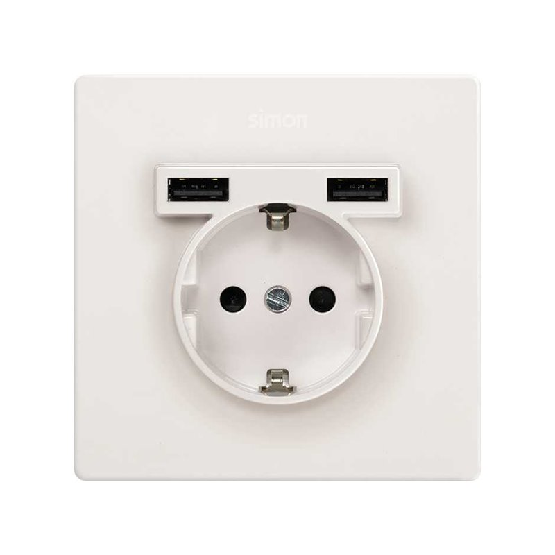 Kit Monoblock 1 base de enchufe y 2 USB 27190610-090  Simon 270 Blanco