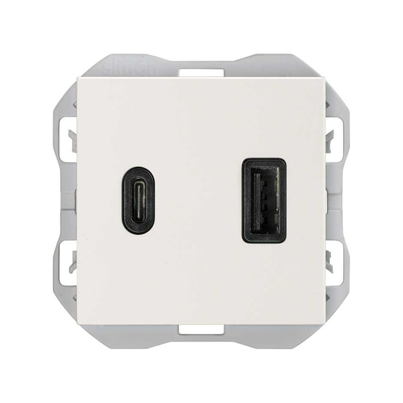 Cargador USB doble Tipo A+C 3,1A Simon 20000296-090 Simon 270 Blanco 2 modulos