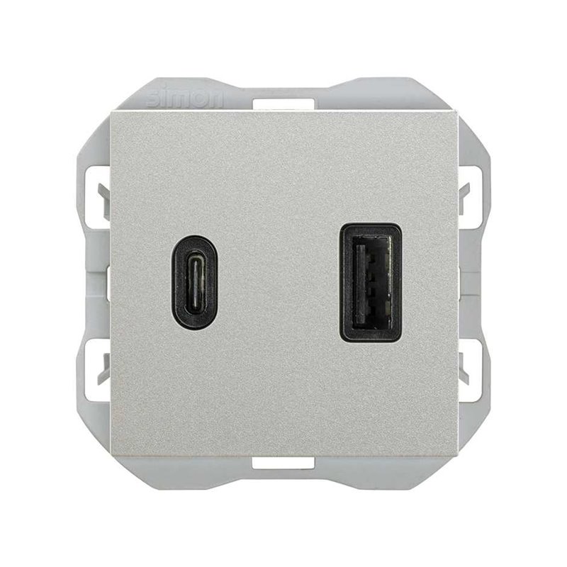 Cargador USB doble Tipo A+C 3,1A Simon 20000296-093 Simon 270 Aluminio 2 modulos